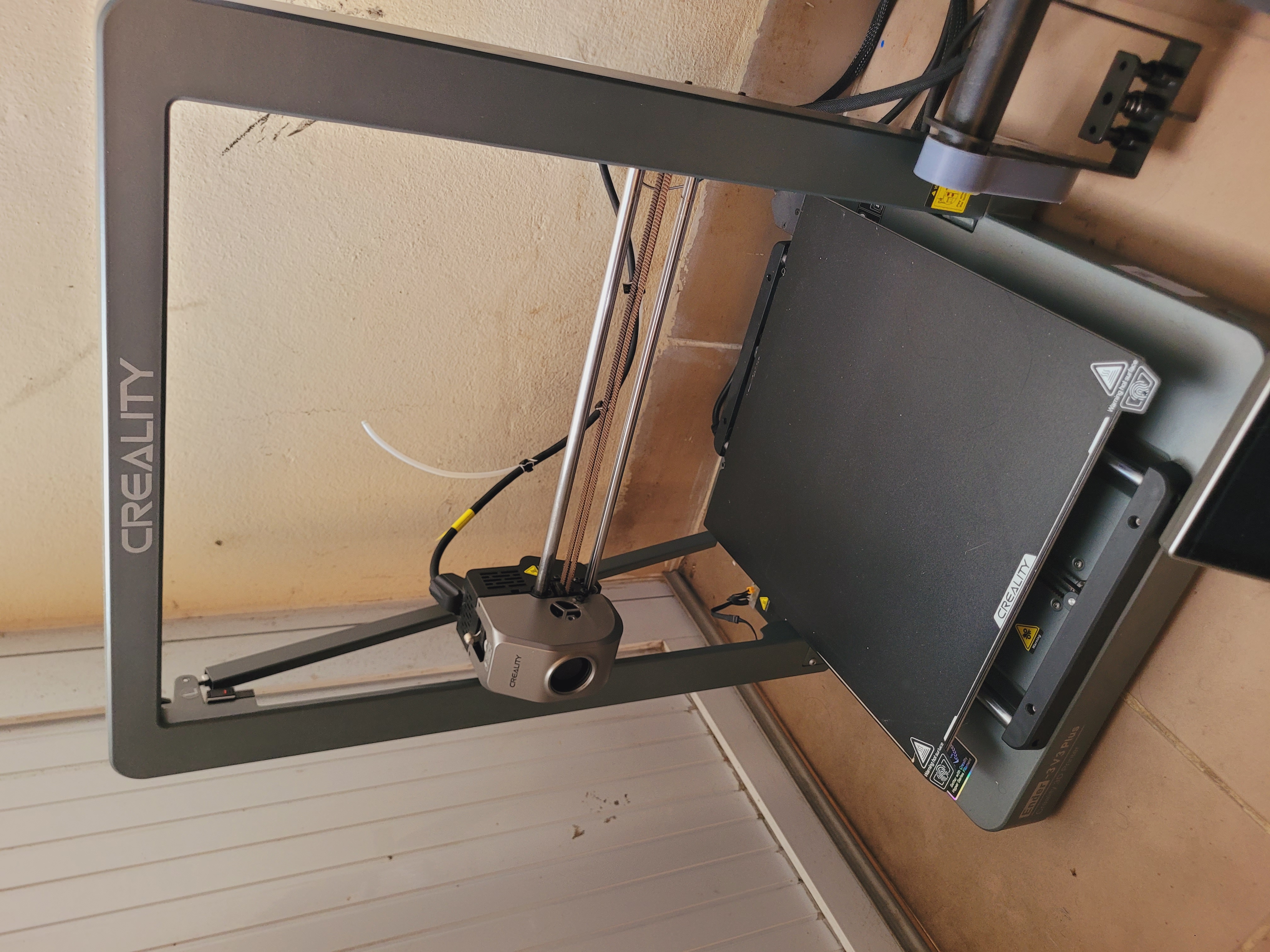 Ender 3 v3 KE, bought brand new. Added the braces for stability and mounting holes for swag.